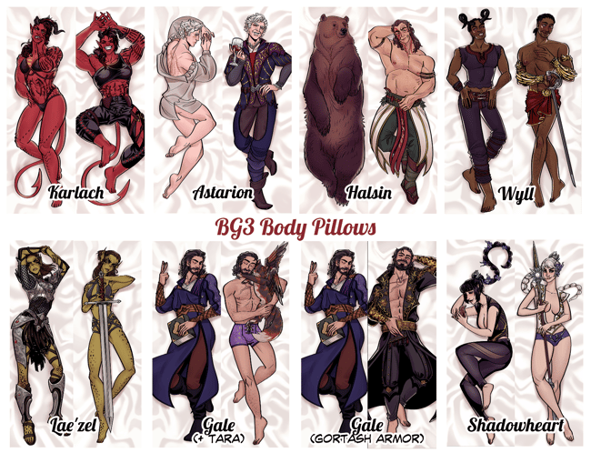 All available in full body pillow size as well. Find those listings here: https://shop.hannaschroy.com/product/bg3-full-sized-body-pillows